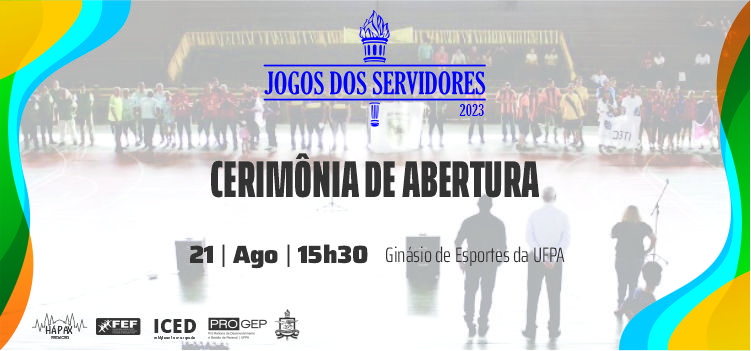 Os tão aguardados "Jogos dos Servidores da UFPA", edição 2023, terão abertura na próxima segunda-feira, 21 de agosto , às 15h30, no Ginásio Poliesportivo da UFPA (Campus do Guamá). Será um momento de alegria e descontração em que as equipes participantes serão apresentadas e quando ocorrerão os primeiros jogos da competição. Junte a sua torcida e venha prestigiar!
