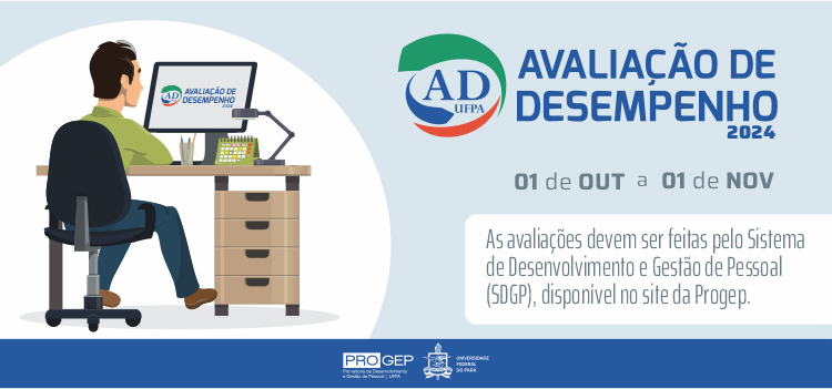 O período para a realização da Avaliação de Desempenho 2024 começa nesta terça-feira, 1º de outubro, e vai até o dia 1º de novembro. A avaliação deve ser feita pelo Sistema de Desenvolvimento e Gestão de Pessoal (SDGP), acessível por meio de botão no site da Progep. O interstício que estará em avaliação nesta edição compreende o desempenho do servidor no período de 1º de julho de 2023 a 30 de junho de 2024.