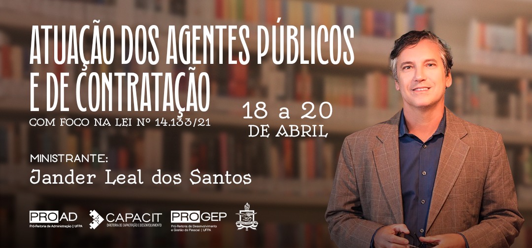 Em prol da otimização dos processos de contratação na UFPA, a Pró-reitoria de Administração(PROAD) e a Pró-reitoria de Desenvolvimento e Gestão de Pessoal (PROGEP) estão ofertando o Curso Atuação dos Agentes Públicos e de Contratação com Foco na Lei nº 14.133/21, no período de 18 a 20 de abril. As aulas serão ministradas na modalidade presencial no CAPACIT e com regime intensivo, sendo de 9h às 18h, com intervalo de almoço.