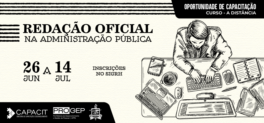 Estão abertas as inscrições para o Curso Redação Oficial na Administração Pública. A capacitação será ofertada na modalidade EAD, totalmente a distância, de 26 de junho a 14 de julho, com atividades assíncronas, composta por videoaulas e materiais em PDF disponibilizados na plataforma moodle. O evento terá carga horária de 20h e tem o intuito de capacitar o servidor a elaborar textos e documentos institucionais com clareza e objetividade, respeitando a linguagem e os aspectos formais da redação e os padrões da Redação Oficial.