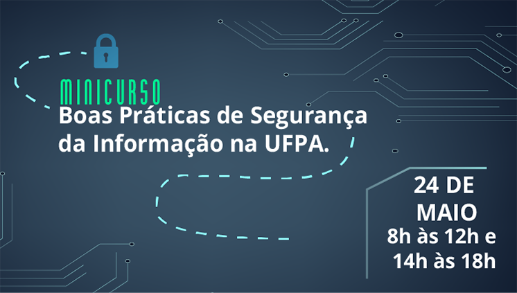 Ofertado pela Pró-Reitoria de Desenvolvimento e Gestão de Pessoal (Progep), por meio da Coordenadoria de Capacitação e Desenvolvimento (Capacit), o minicurso "Boas Práticas de Segurança da Informação na UFPA" está com inscrições abertas. O evento terá carga horária de 8 horas e ocorrerá no dia 24 de maio, das 8h às 12h e das 14h às 18h, no prédio do Capacit, Campus.