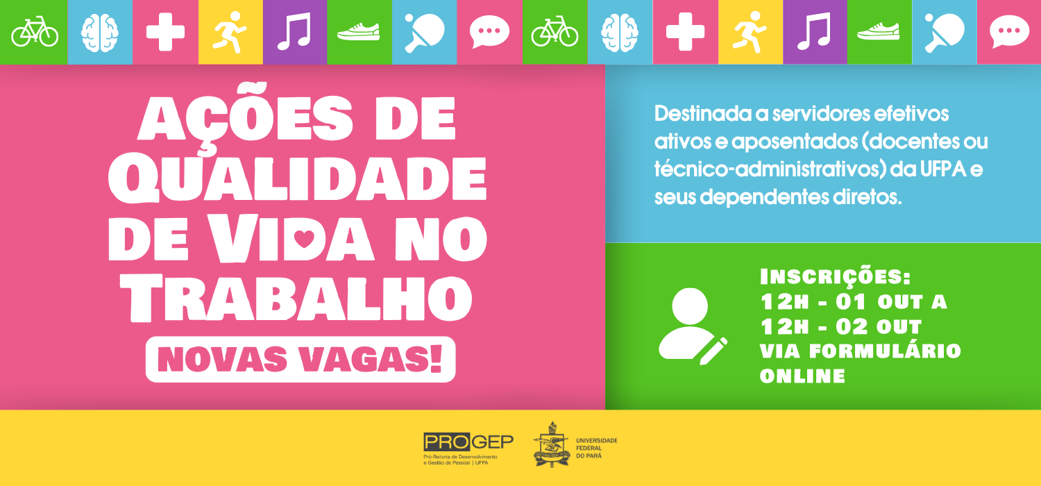 As ações estão sendo ofertadas pela Coordenadoria de Qualidade de Vida e Bem-estar no Trabalho (CQVT), integrante da Diretoria de Saúde e Qualidade de Vida (DSQV), em parceria com os Grupos de Estudos e Pesquisas em Cultura do Corpo, Educação, Arte e Lazer (LACOR) e o Grupo de Estudos e Pesquisas em Educação e Educação Física (GEPEF), pertencentes à Faculdade de Educação Física (FEF/ICED) e a Faculdade de Música (FAMUS/ICA).