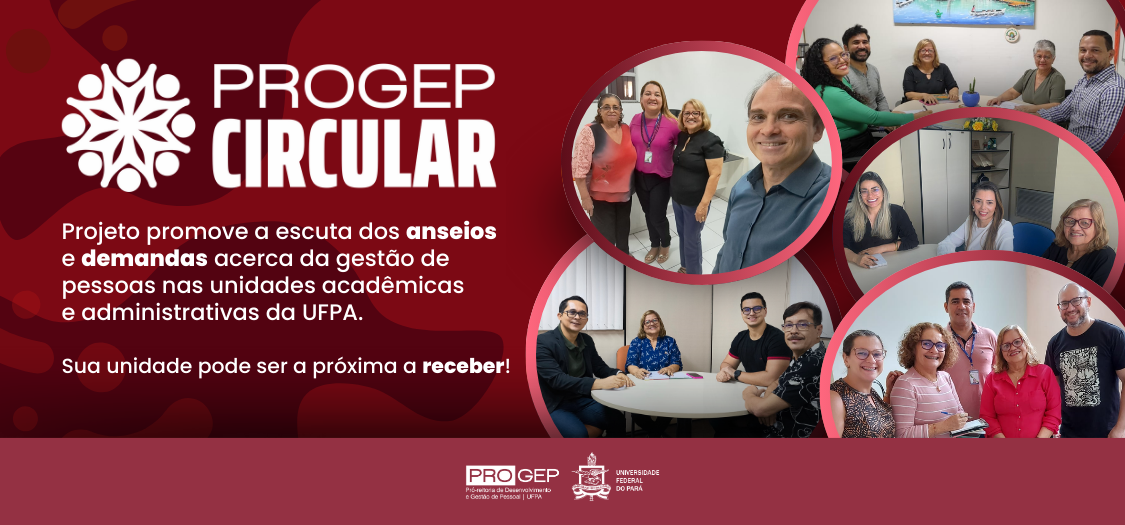 Para promover a escuta dos anseios e demandas acerca da gestão de pessoas nas unidades acadêmicas e administrativas da UFPA, a Pró-Reitoria de Desenvolvimento e Gestão de Pessoal (Progep) criou o projeto "Progep Circular". O objetivo é assegurar que todos os espaços que constituem a universidade possam ser ouvidos e considerados para a implementação das ações de desenvolvimento, saúde, qualidade de vida, bem-estar e socialização realizadas pela Progep.