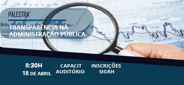 Estão abertas as inscrições para a palestra “Transparência na Administração Pública” que ocorrerá no dia 18 de abril, de 8h30 às 12h30, no auditório do Capacit. A capacitação é destinada aos servidores da UFPA e tem o intuito de proporcionar uma reflexão acerca da importância da transparência como instrumento de controle social fundamental para o exercício da cidadania e fortalecimento da democracia.