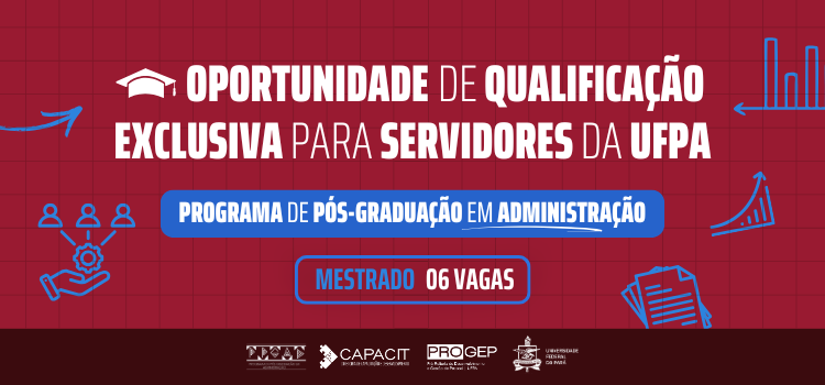 O Programa de Pós-Graduação em Administração (PPGAD), por meio do Programa de Apoio à Qualificação de Servidores Docentes e Técnico‐Administrativos, está destinando 06 vagas exclusivas para servidores em sua seleção para as turmas de mestrado 2025, conforme disposto em edital.