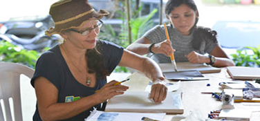 Servidores e familiares aproveitam oficina de pintura da Progep