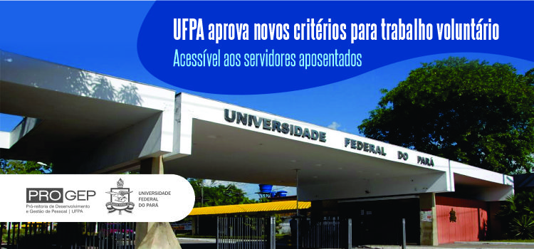 Estão disponíveis no site da Progep (manual do servidor) as novas regras para realização de trabalho voluntário na UFPA, que obedecem a Resolução nº 874, de 23 de janeiro de 2024, do CONSUN, a qual trata do "Programa de Prestação de Trabalho Voluntário", possível para servidores aposentados (técnico-administrativos ou docentes).